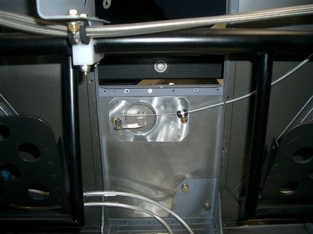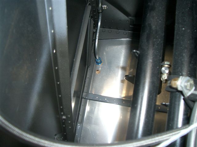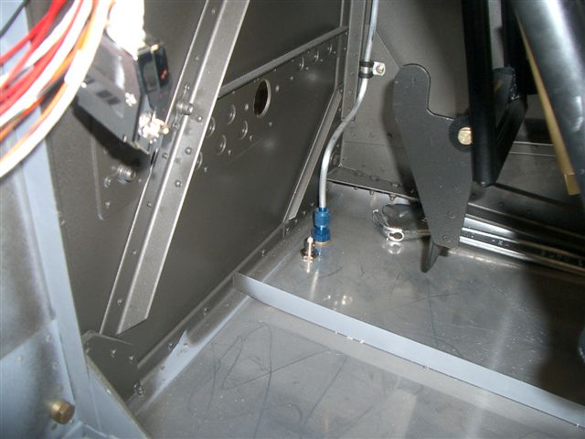All of this stuff would be a pain in the butt to do with the panel in place. I really dread how hard its going to be if I need to get up under here for anything that I forget. I also used an idea from Dan C on using 2 keeper rivets for that angle stiffener in place just above the heater vent. However I put the keeper in the wrong hole. I luckily caught that in time to drill out today and redo. The last thing should be the fuel line exit from the backup fuel pump.