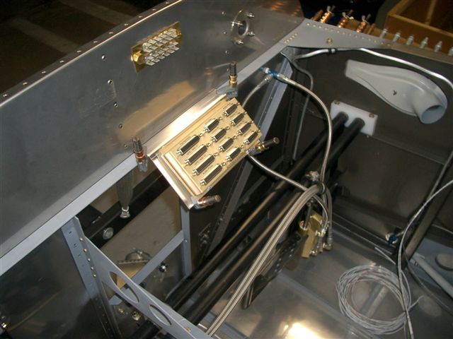 Today I wanted to get the fuel line hole drilled in the firewall. Still not sure where to do it yet. I was looking at Walter Tondo's site and he did it thru the top of the facet pump doubler. It this would work for me that would be best. I went ahead measured per the plans and drilled the hole for the nut in the front landing gear and installed the plug as shown in the first pic.