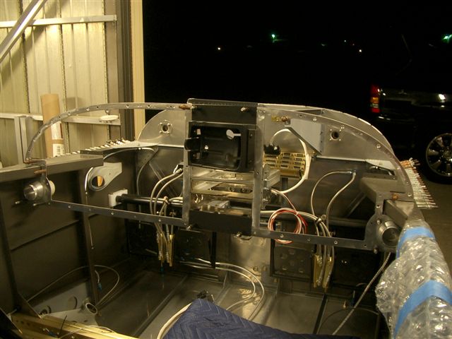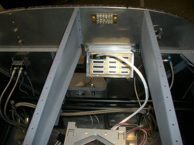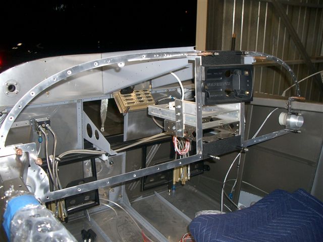 Then Dru showed up at his hanger down the road and I ran down there and borrowed his metal brake. Worked like a champ. When I got back to my hangar I clamped it in place and put 2 of the panel ribs and panel frame in place to check for clearance. I took several pics from different angles to show how the cables will plug in. I think I will rubber mount the Approach FastStack box to the bracket to minimize vibration. Also I will make a layout to go into the Avionics Binder showing what the DB connectors are. Once everything is installed you would not be able to see the labels on the box. About the best you can do is reach up from under and unscrew the connectors if you needed to remove them.