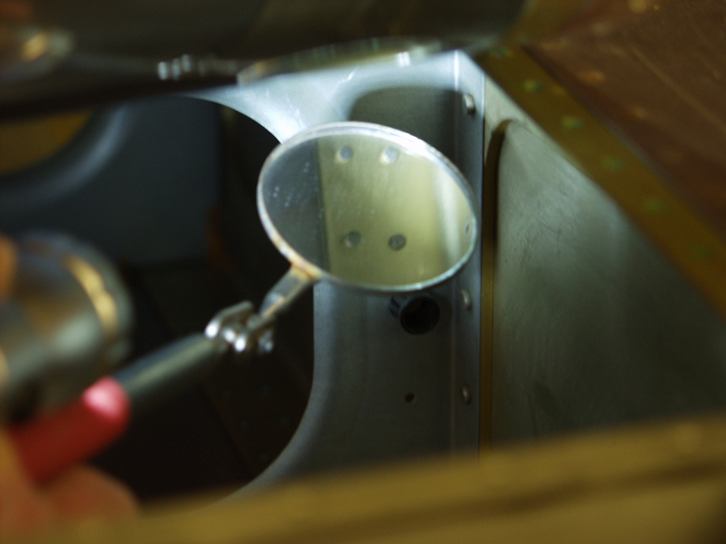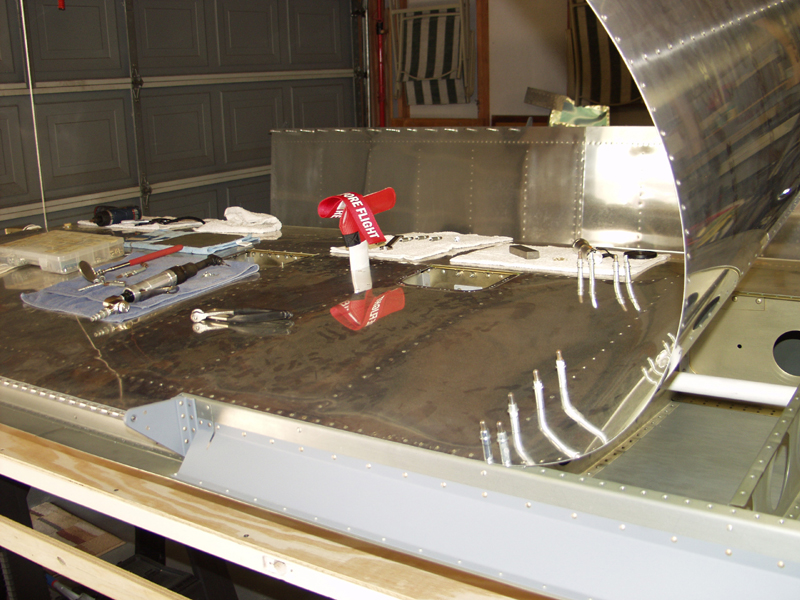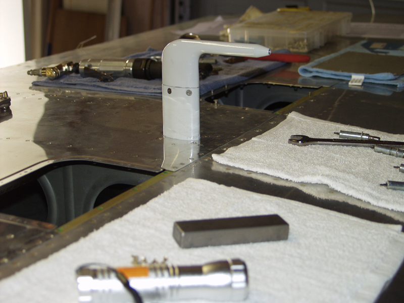 Had to take my time with riveting the Pitot Tube stiffener and getting it attached to the spar and working around the alum tube. But I got it done. Even got Derek to shot a few for me while I bucked them from the inside on some far reaches. Good thing I have my small Tungston bucking bar. This thing was really worth it. I bet you could build a entire plane with this one bar. Before I closed out each bay I used a mirror and flashlight to recheck my rivets. Had to reset a few but no drillouts. I think I will be cruising thru the RV8 next time!