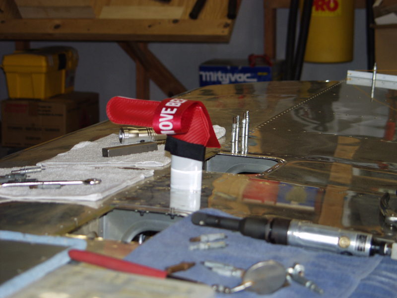 Back to riviting the left bottom skin of the wing. Its slow going trying to reach thru these holes to reach across the wing. When I built the table it was nice having it up high but the other work on it but now on the skins it would be better if it was lower. O well you can't have everything.