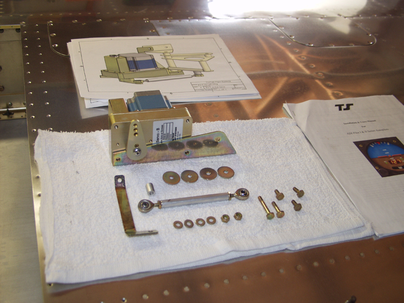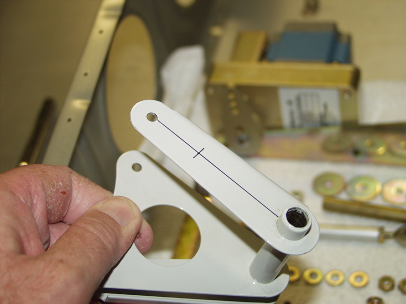 I got the Trutrak servo kit back out and laid out the pieces. The kit is very well done. All I had to do was remove the bellcrank and prime the control rod pieces. While that dried I went ahead and tapped the tie down ring. With that done I marked the spot to drill the hole on the bellcrank per the trutak instructions. 2 inches from the outer hole.