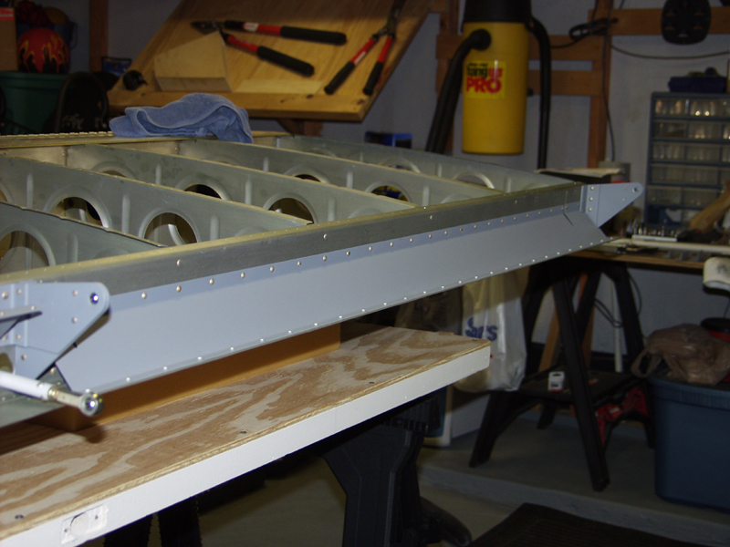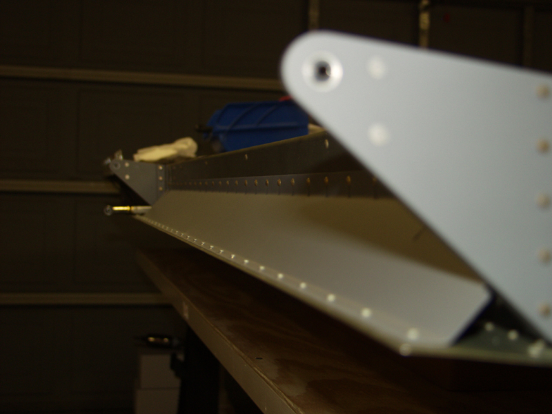 Next I removed the aileron and started work on the aileron gap fairing. I had already drilled it and removed for priming. I riveted the rear spar in place first and then finished with the trailing edge of the wing. Things are really feeling strong now.