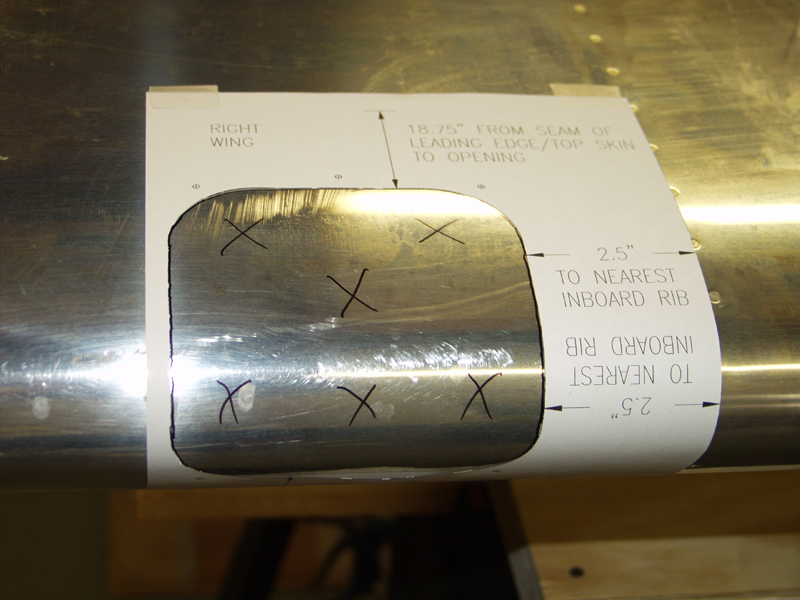 I started the light by taping the template they give you with the light kit. You basically cut out a hole in the middle and trace the outline on your wing. I used a dremmel tool to make the cut. Came out pretty good. Then I used a flapper wheel to clean up the hole. These are hard to find. I get them now at Northern tool. They work great for this stuff. They dont grab like the carbide tools do. Just go slow and ease up to the line.
