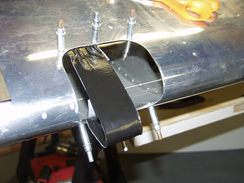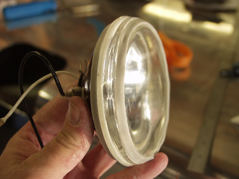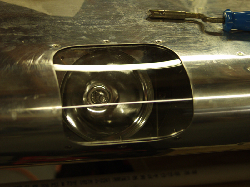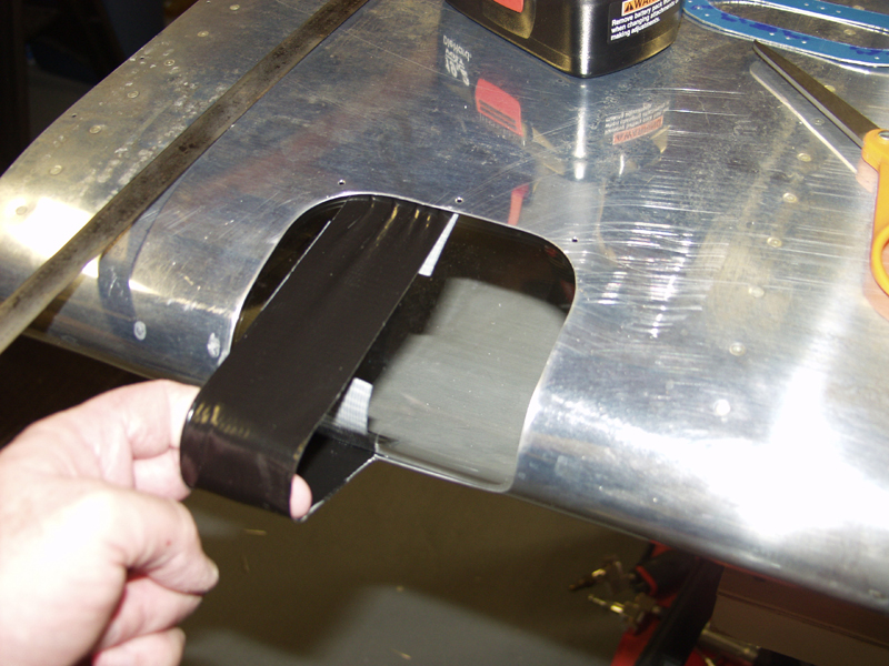 They supply this little foam strip to put around the light bulb to keep it from rattling around in the bracket. Next I marked the lens and cut it with a cutoff wheel as well. Cleaned up the edges and installed the mounting strips. I dimpled the holes with a #6 die and then installed the lens per their instructions of making a handle out of ducktape. Worked like a champ. You really need to stick with this little trick. Before the bracket is in place you can push it from behind but I don't think you could make it as tight. I just pulled on the handle tight and then drilled the holes using the ones in the wing. Worked like a champ.