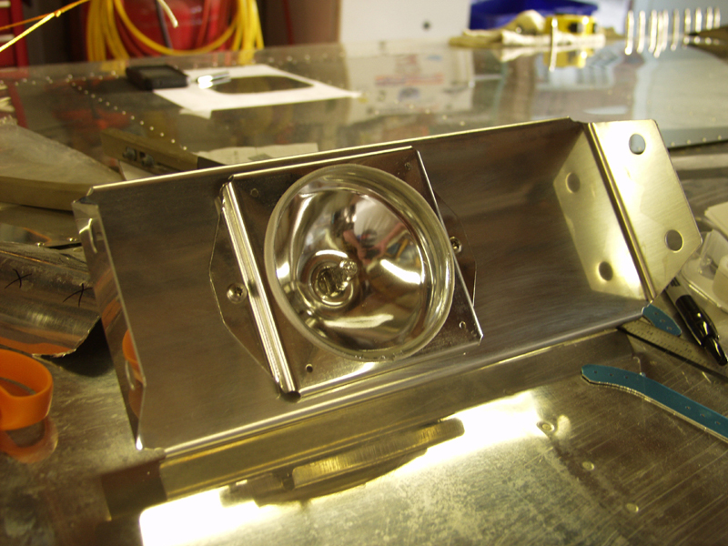 They give you another template to drill the holes for the nutplates for the light bracket. Overall the instructions are well done and just follow the order. I really kept looking at the bracket thinking there is no way that is going to fit in the hole and then I going to have a hole in my wing! Once you drill the holes per the template you install the nutplates on the outside of the ribs with pop rivets. The holes in the light bracket are large to allow for adjustment of angle of the light. The one on this wing will be the taxi light and the other will be the landing. The taxi light will be set lower in front of the plane.
